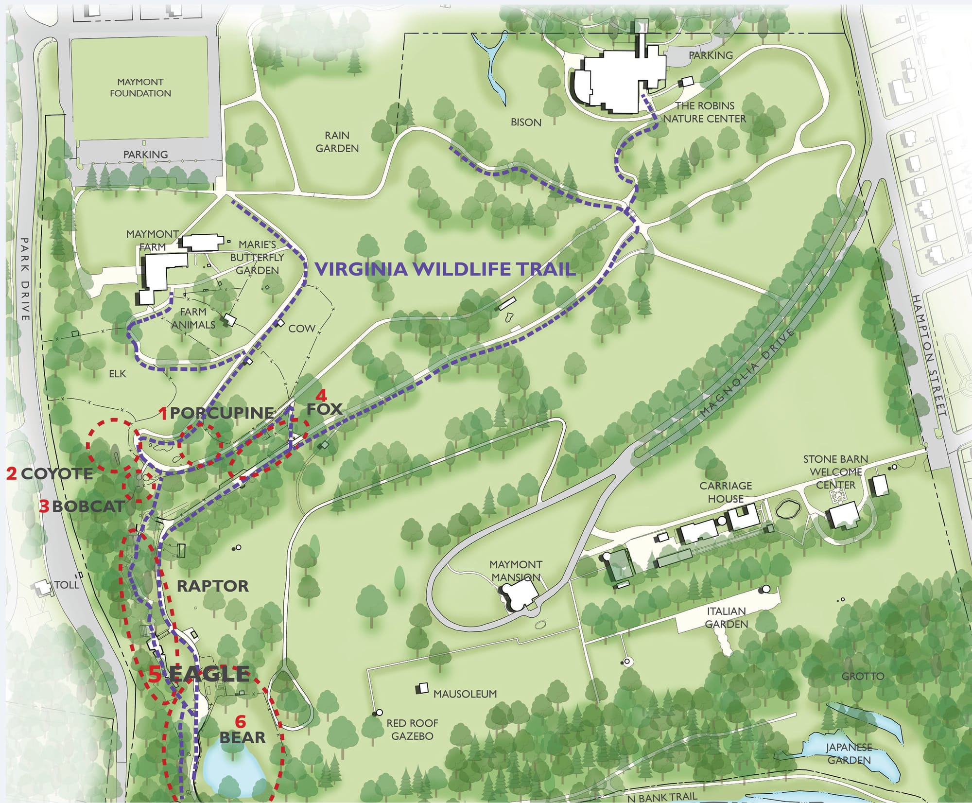 What will $11.75M buy the Maymont Foundation and the people of Richmond? Brand-new habitats for two new species – coyote and porcupine – on the Virginia Wildlife Trail; reconfiguring pathways on the trail to connect more fluidly and accommodate more guests; expanding visibility and education areas for the bear and bobcat habitats; restoring the mansion’s over-60-year-old roof to the original red slate; installing museum-grade climate control and fire detection systems in the mansion.