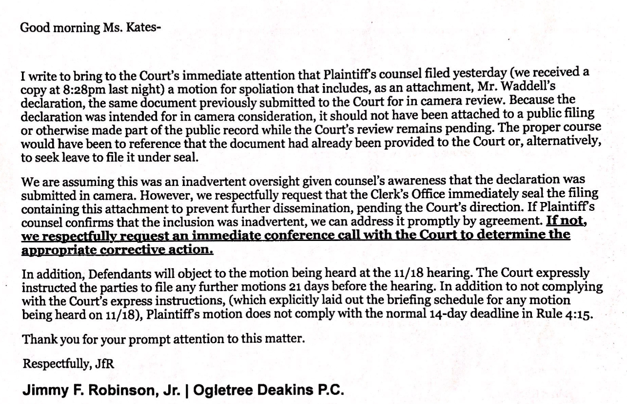 However, newly surfaced emails show the attorney — Jimmy F. Robinson Jr. with Ogletree Deakins — did, in fact, request that the document be sealed.