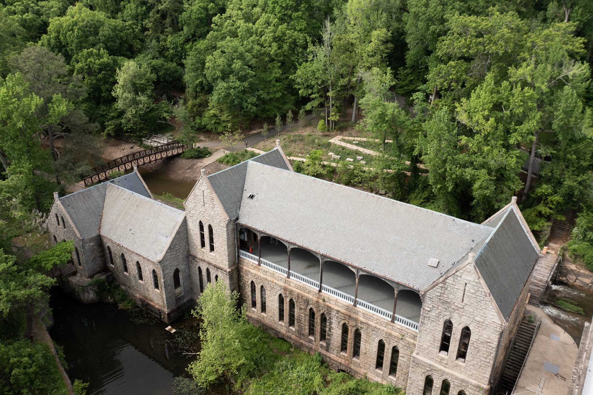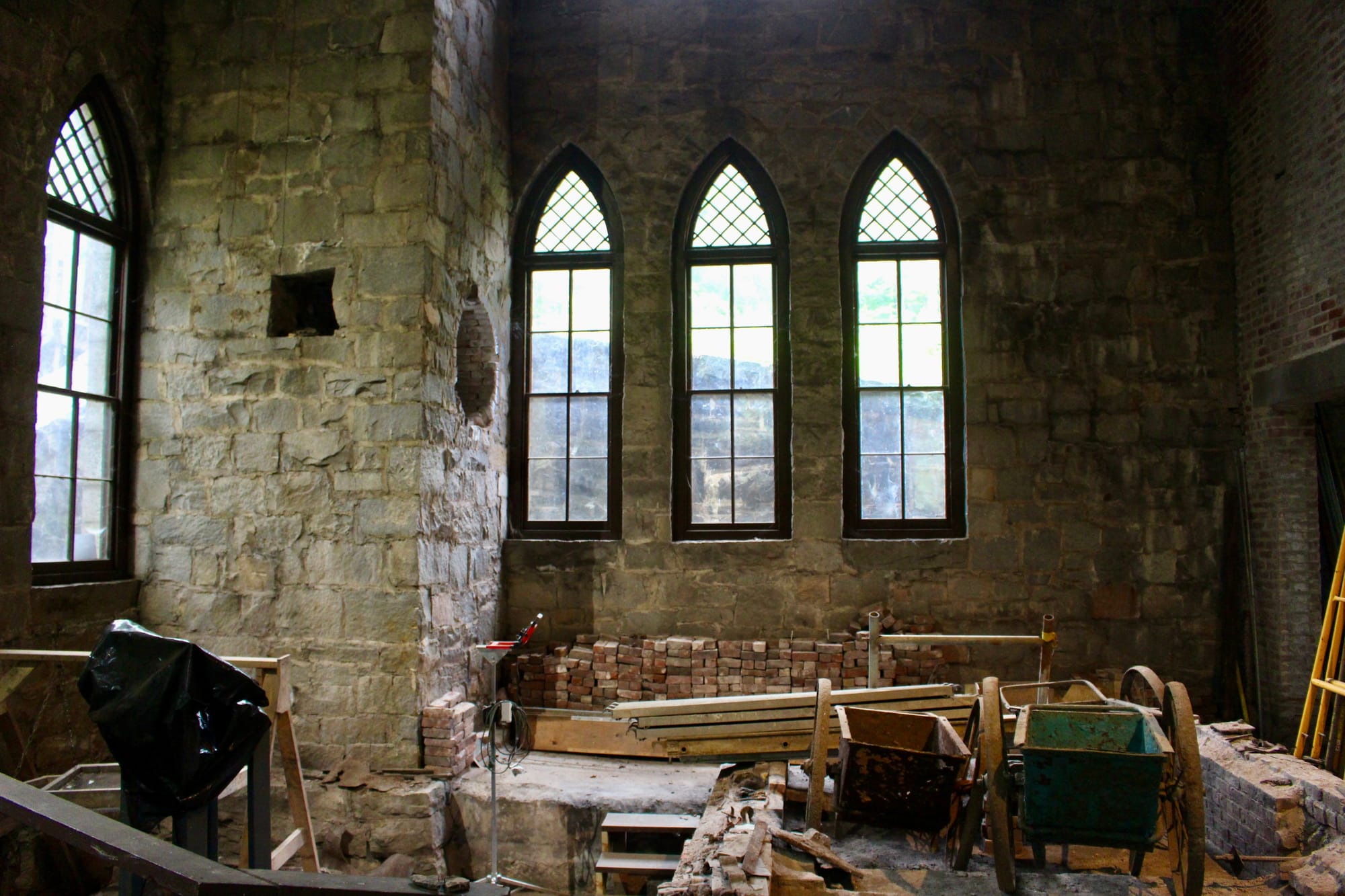 Over the past 10 years, however, efforts have gained momentum, spurred on by both the Friends of Pump House group and the city. (The Friends have “been beating the drum forever,” said Garrison; “they’re sort of the engine really demanding that this building get the attention that it needs.”) Most recently, the Friends have been carrying out a major restoration of the pointed, cathedral-style windows that allow light to flood into the granite building.