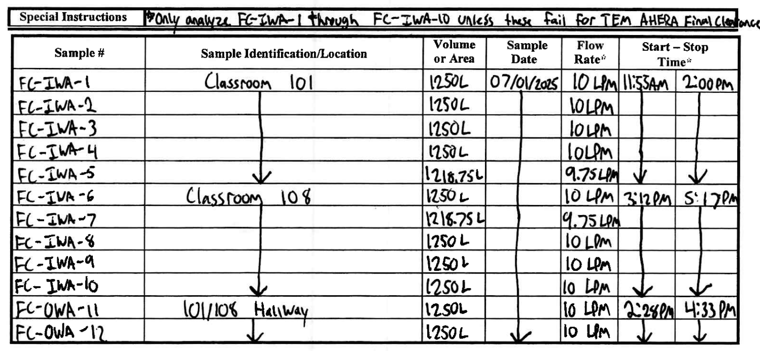 A third-party contractor began removing the floor and ceiling tiles from Redd’s classrooms, a conference room and the auditorium starting in April and continuing from June to July, according to an August asbestos abatement report on Redd Elementary provided to The Richmonder. Certain areas were restricted from public access, and the contractor conducted daily air sampling during June and July. The results showed that the presence of asbestos was minimal in the places tiles were removed from.