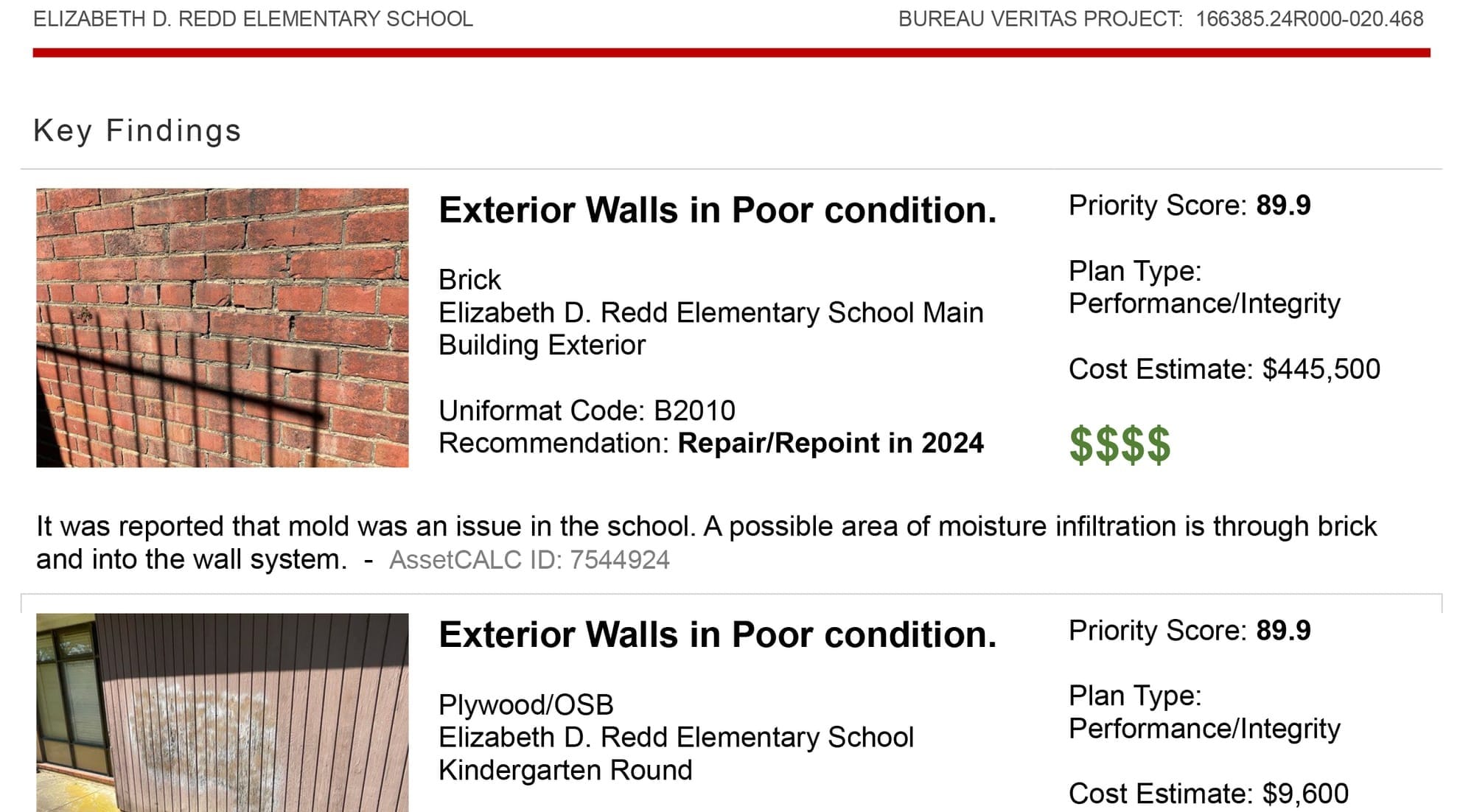 The 50 reports, which were reviewed by The Richmonder, document over the course of thousands of pages both deficiencies and strengths in school facilities’ structural, electrical, mechanical, fire and plumbing systems, as well as site conditions like parking lots, sidewalks and athletic and play facilities.