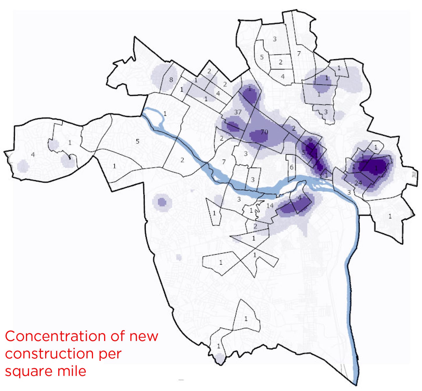 Even prior to the code refresh, some of those trends are already evident in parts of the city where developers are snapping up lots and remaking them as duplexes, denser groups of single family homes or multifamily buildings. Demolitions have been particularly common in the East End, according to mapping by the Planning Department.