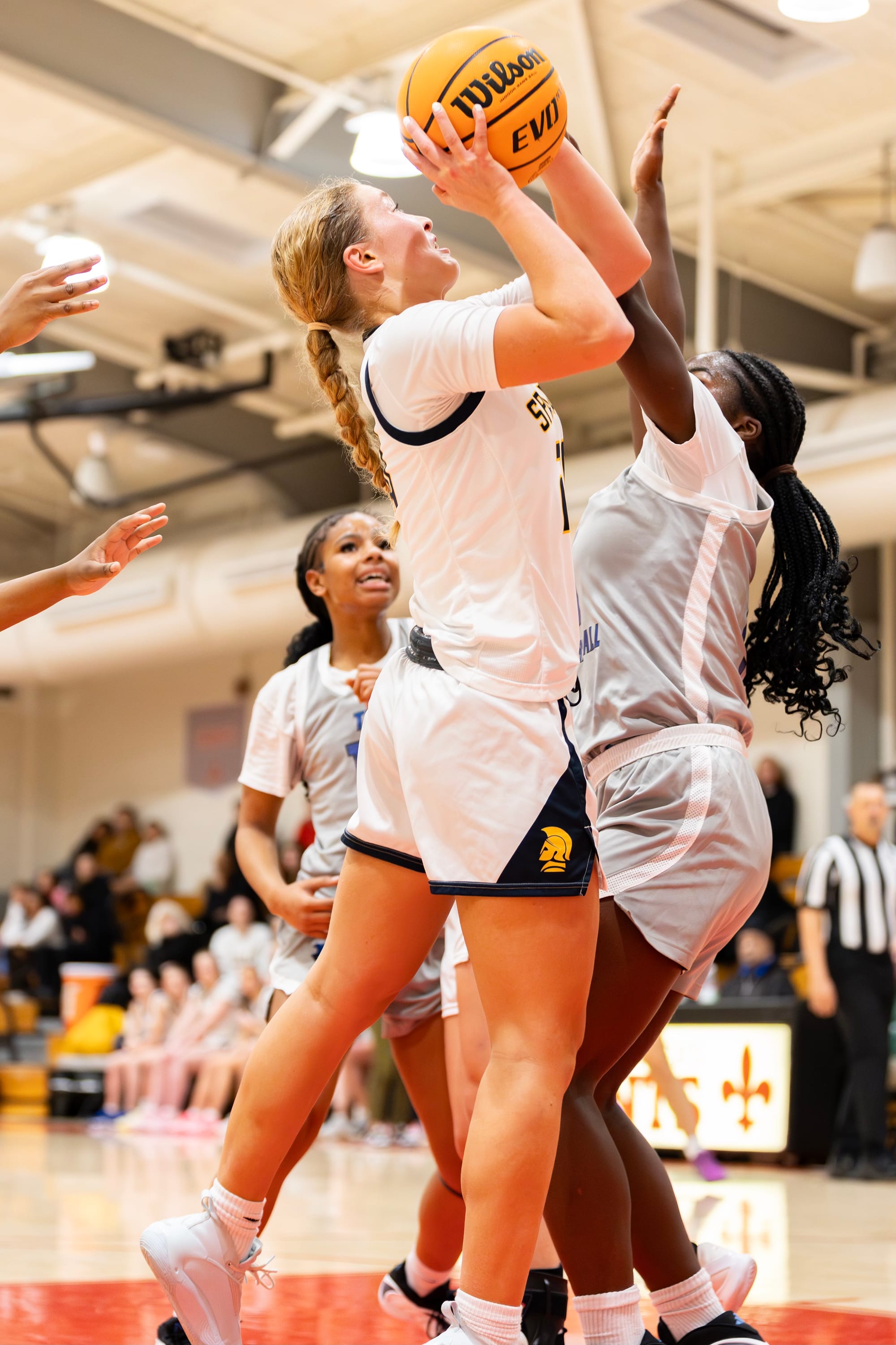 Then, at 2:29, Lilly Thoman (nine points, six rebounds, seven assists) drove baseline, hit the layup, drew a foul, and converted the and-1 to give the Spartans a 45-43 lead they never relinquished.