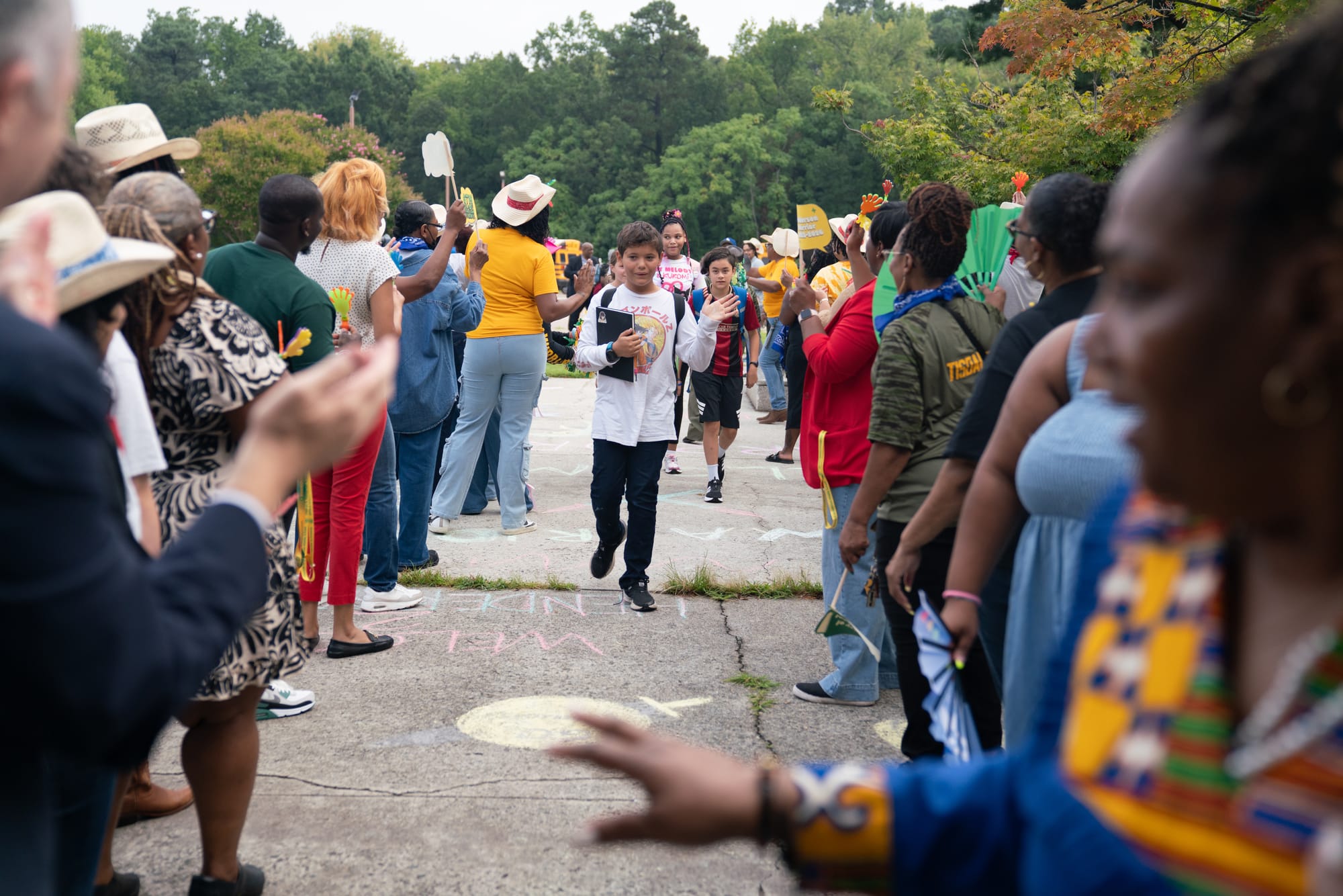 Sixth grade students hopped off school buses Monday morning and walked into a crowd of cheering teachers and staff, while songs like “Boots on the Ground” by 803Fresh played.