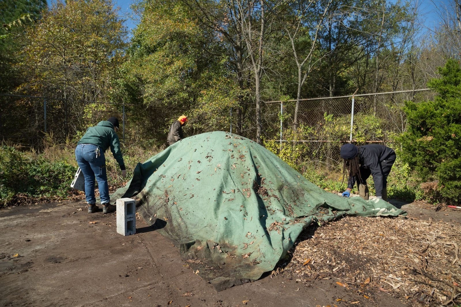 The program was tweaked over time, its final form relied on windrows — long rows where composting inputs (browns and greens) were mixed, tarped, and left to cook (as microorganisms break down the input matter, heat is created). Finally, the compost was then sifted to create a fine product.