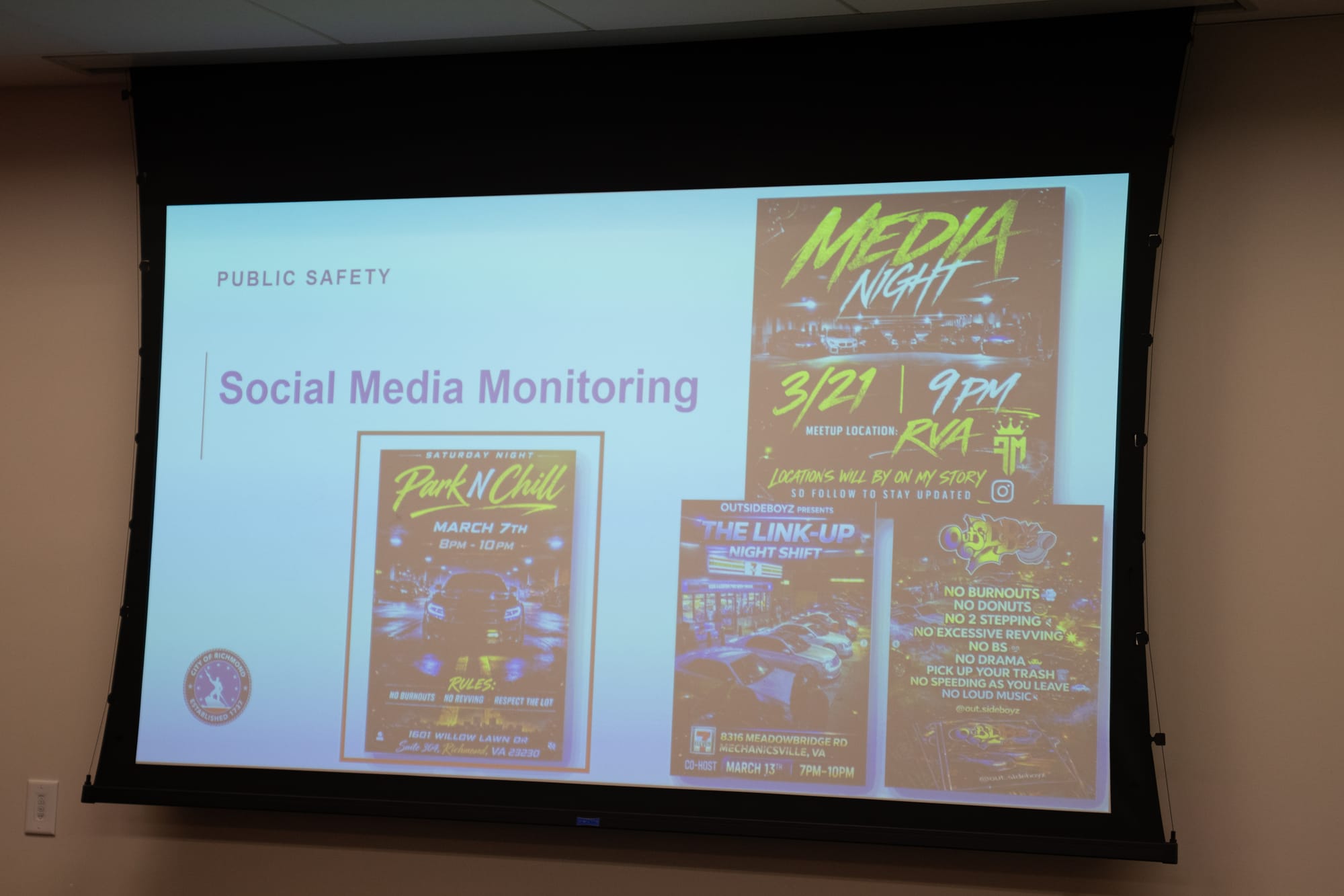 In a meeting last week organized by City Councilor Andrew Breton (1st District), Richmond Police Chief Rick Edwards explained to impacted residents why officers had a difficult time effectively addressing a “street takeover” that took place overnight on March 7.