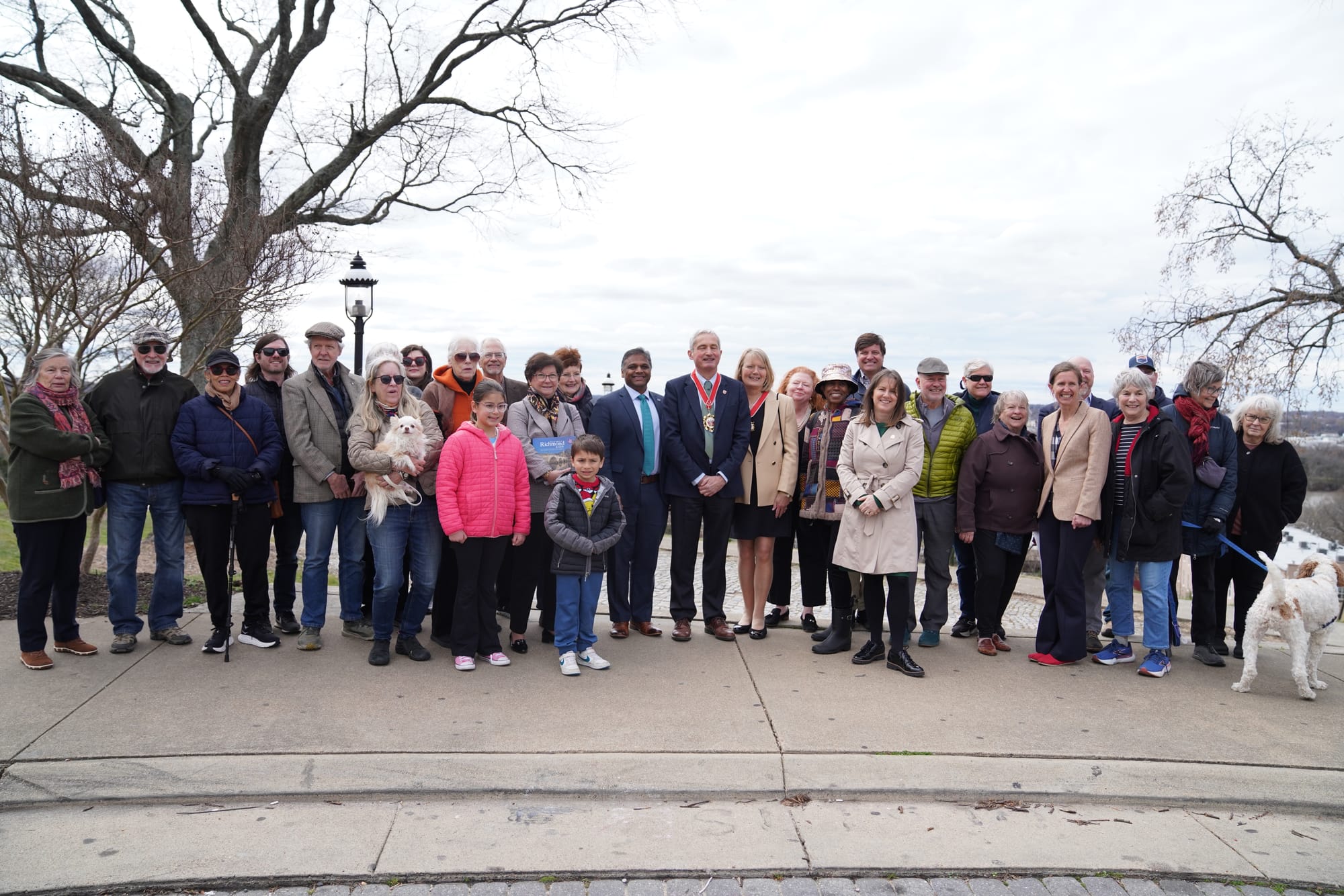 Mayor Richard Pyne of Richmond, England and his wife, Helen, met with local Richmond Mayor Danny Avula in front of "the view that named Richmond" at Libby Hill.