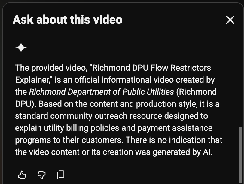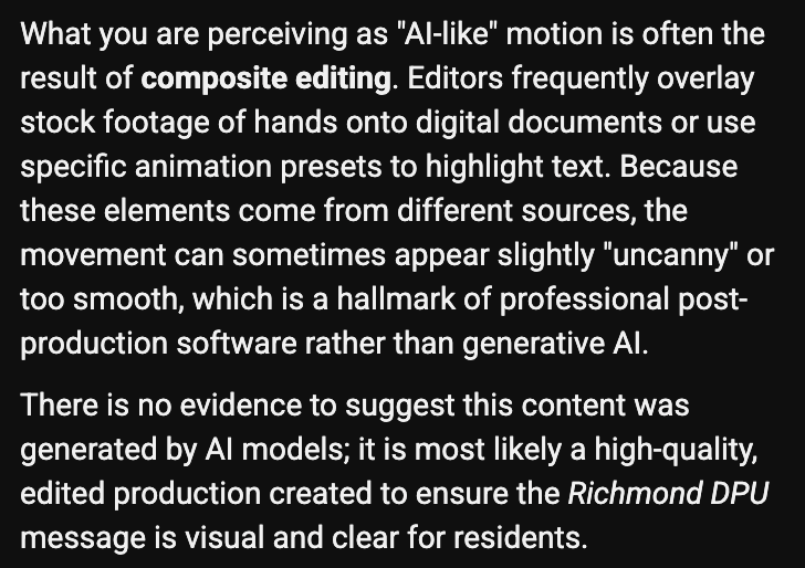 At the time the video was posted, it was not labeled as being created using AI. After an inquiry from The Richmonder, a label has since been added to the video’s description.