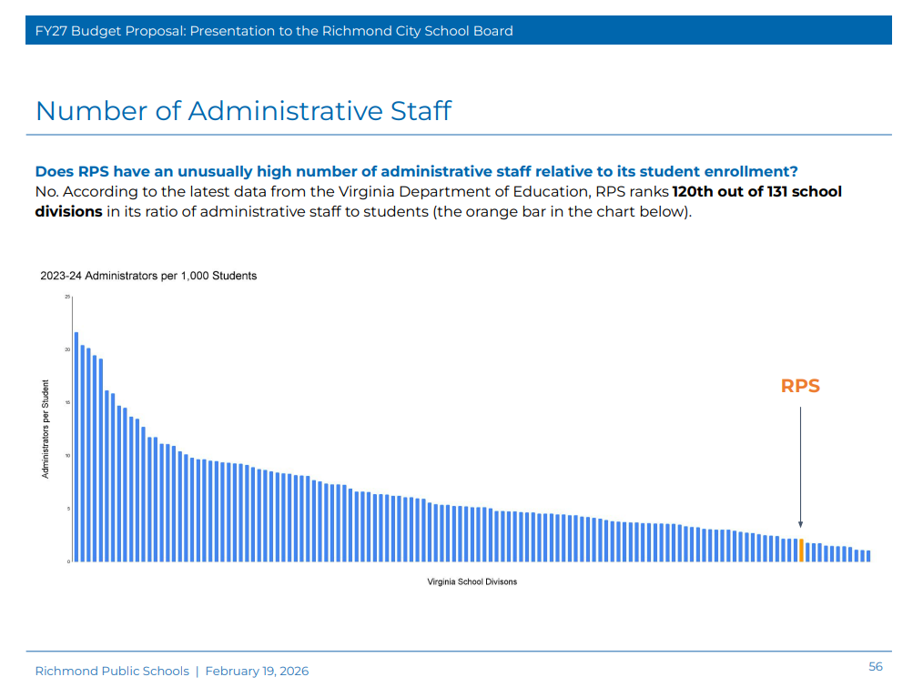 Due to expected financial constraints, Superintendent Jason Kamras proposed eliminating 46 central office positions. Seven of the 46 central office positions were already vacant, RPS spokesperson Alyssa Schwenk told The Richmonder.
