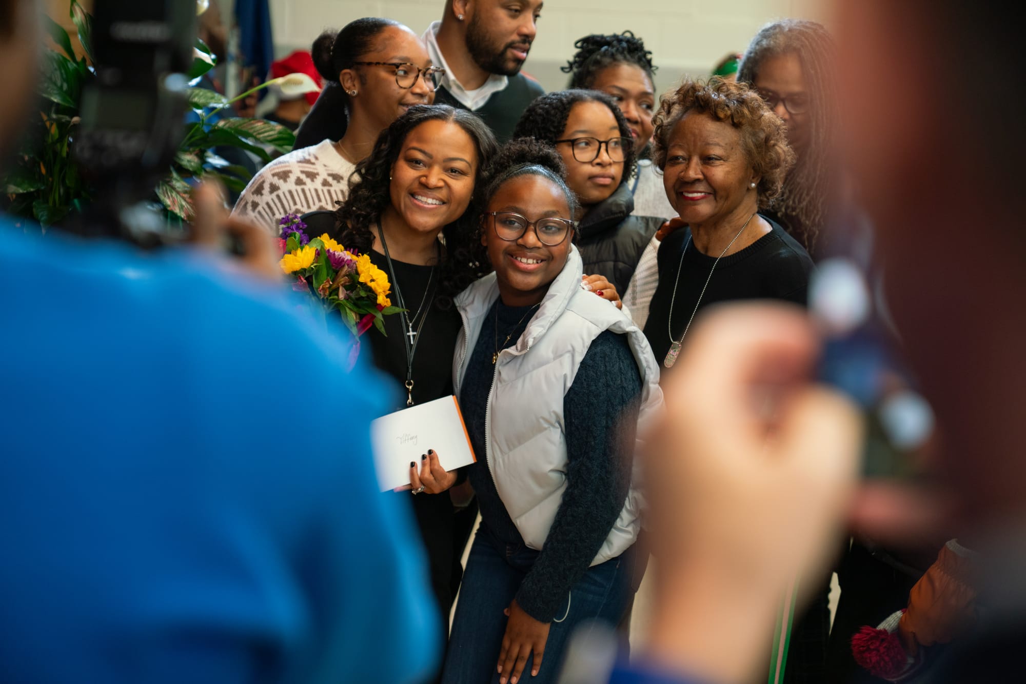 That vision and her accomplishments make her “a great example of what it means to teach with love,” Superintendent Jason Kamras told students, shortly before asking them if they feel that love. The students did.