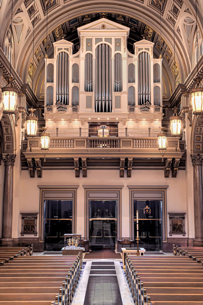 The gallery organ was completely built and voiced in the Juget-Sinclair shop. It was then deconstructed, shipped to the Cathedral, and rebuilt and voiced in the church. Now, with its finishing touches complete, the gallery organ is available for all to experience.