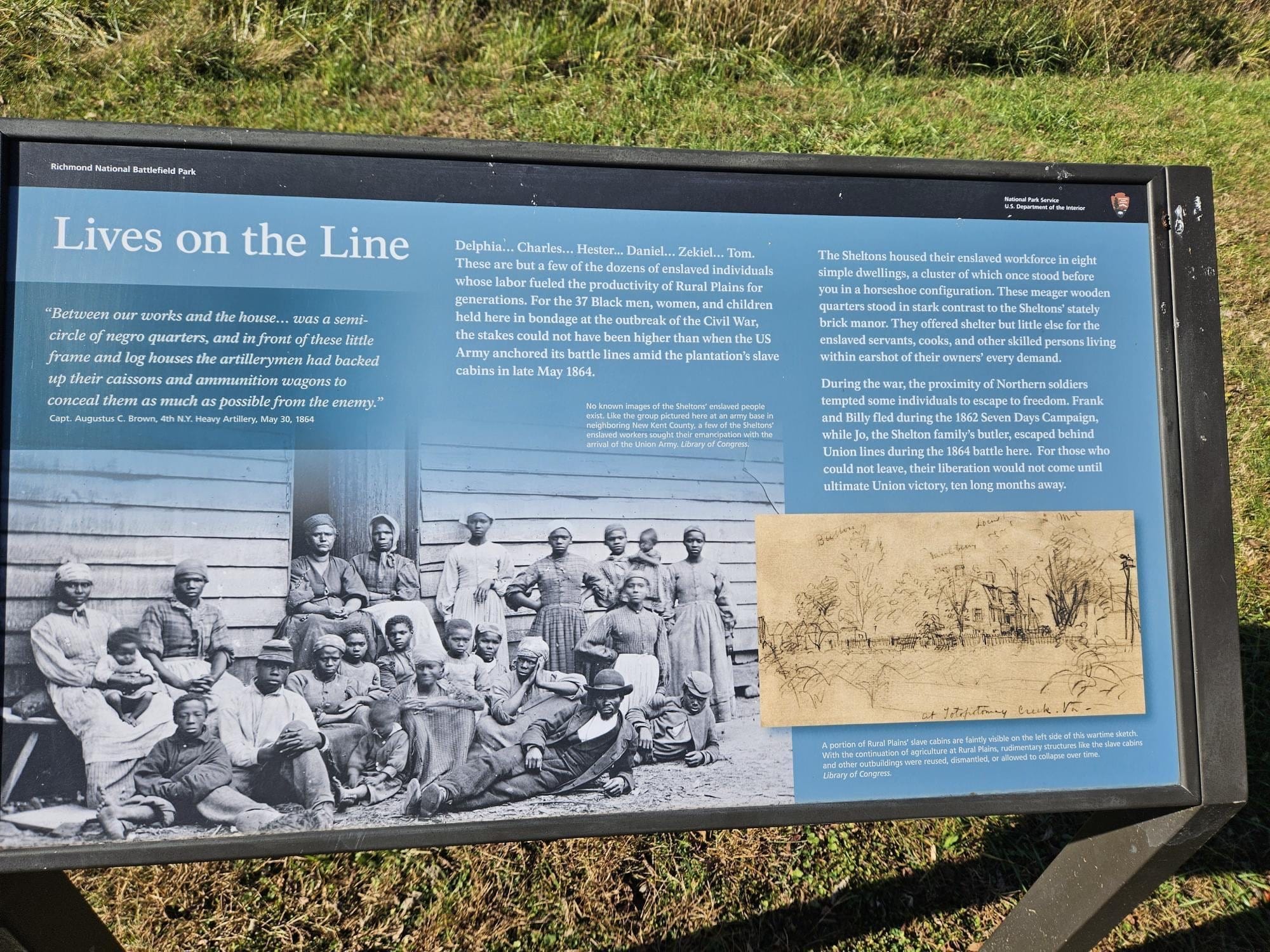 Images taken by Park Service employees at the Mechanicsville site, specifically pointing to descriptions of the enslaved's living conditions.