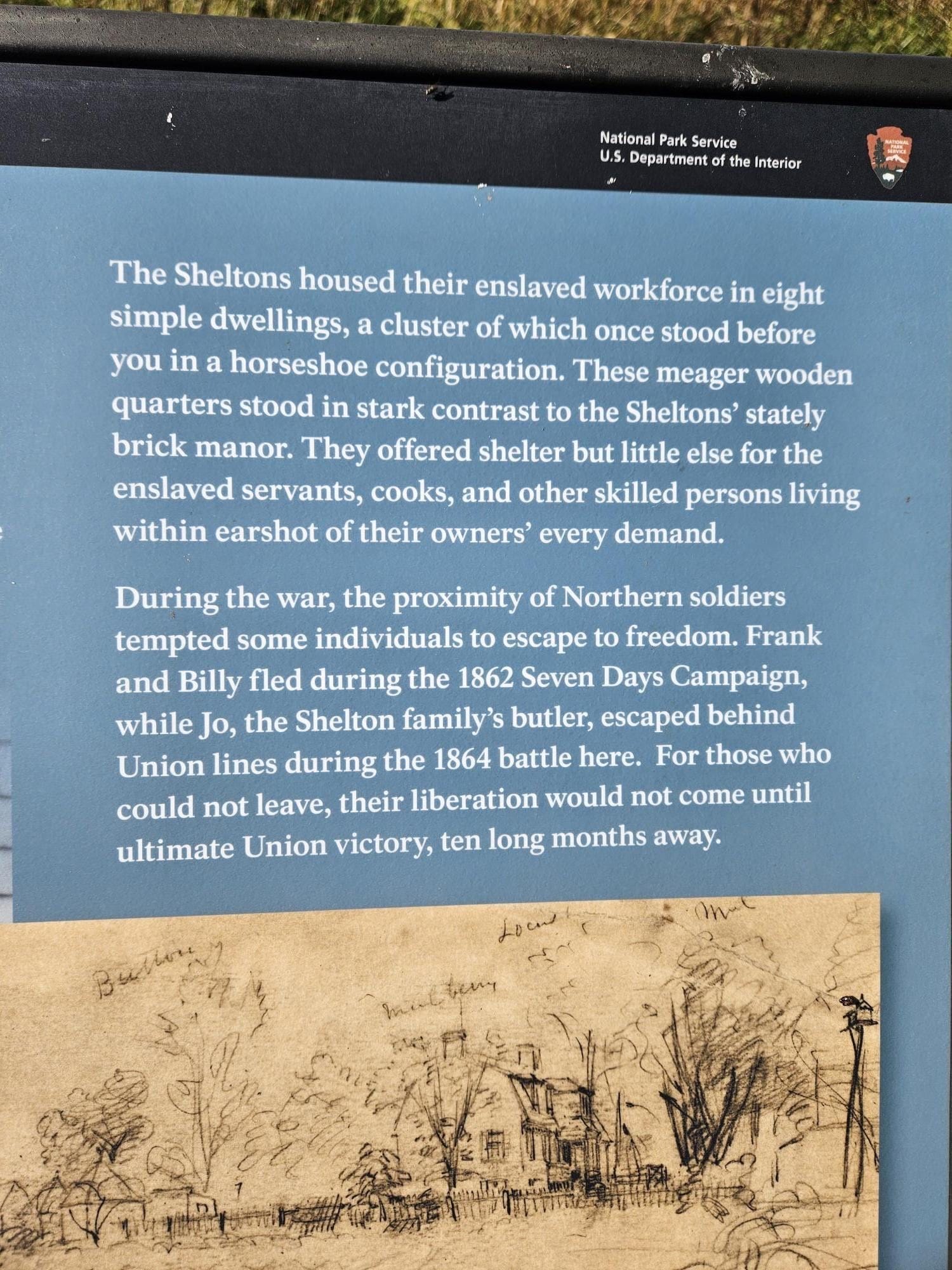 NPS staffers specifically photographed a section of the sign that showed the discrepancy between the slaves’ lodgings and the Sheltons’ brick manor.