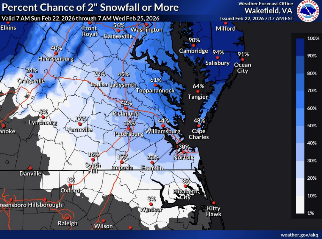 Coastal areas in the Northeast should expect blizzard conditions as heavy winds and snows will make travel difficult, but at the moment, it is unlikely that level of storm reaches Richmond.