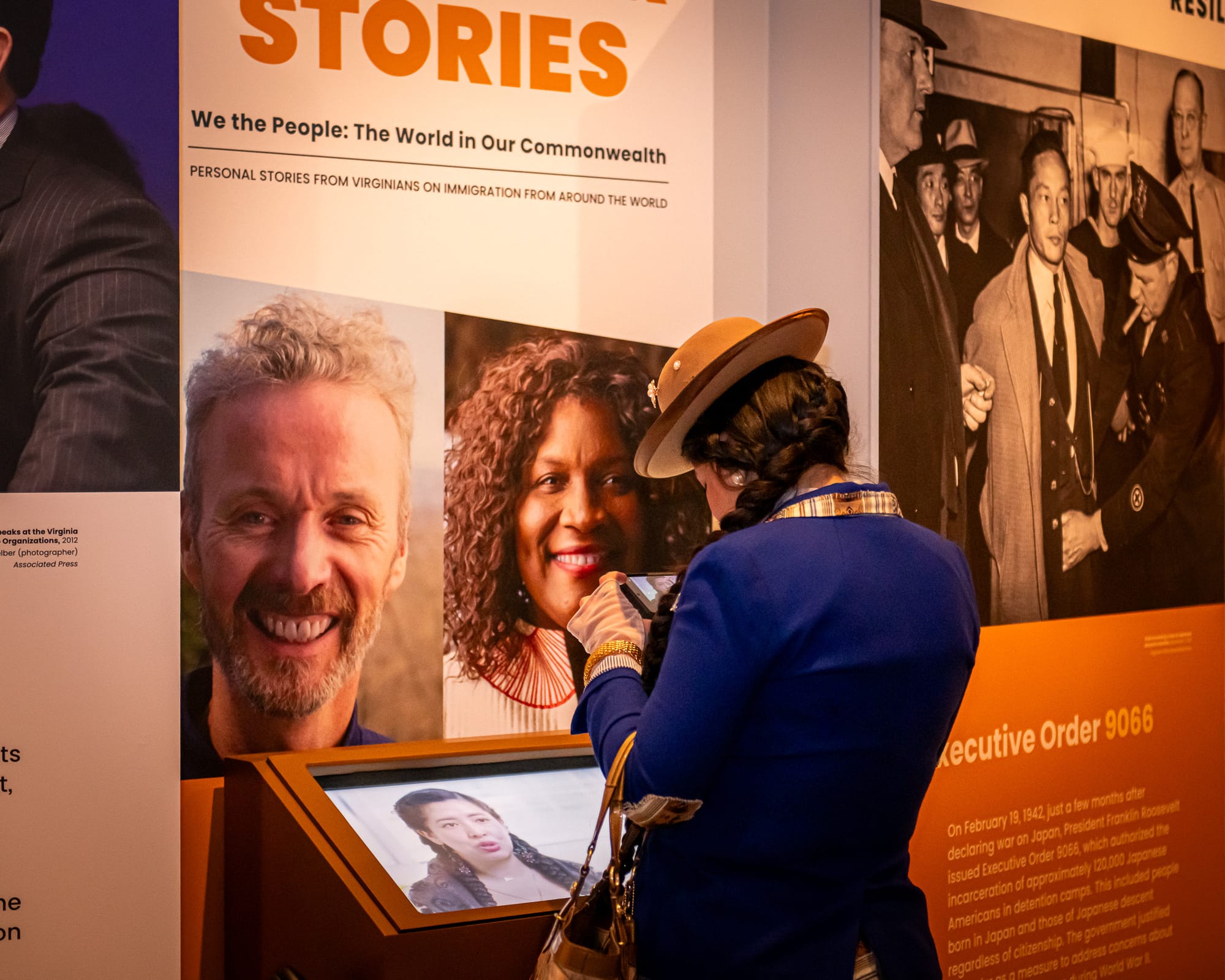 In addition to the traditional displays, there are videos which provide a history of immigration to the United States and Virginia, as well as two oral history kiosks, which will feature six people the curators interviewed, as well as touch screens that talk about various immigrant communities within the state.